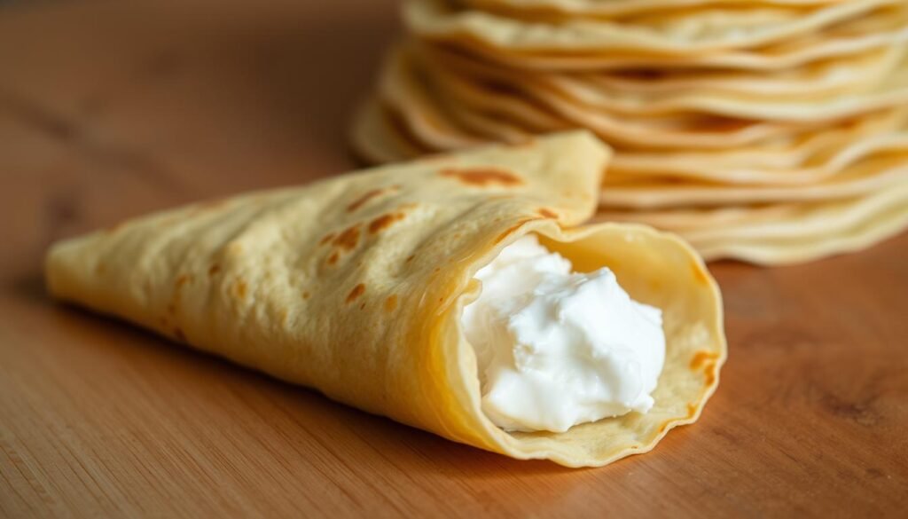 Le fromage cottage rend les crêpes moelleuses et légères. Sa texture crémeuse ajoute une douceur incroyable. C’est un secret pour des crêpes parfaites.